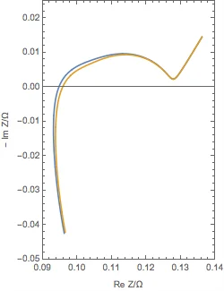 下圖顯示了 LiB 負極阻抗的典型奈奎斯特圖。