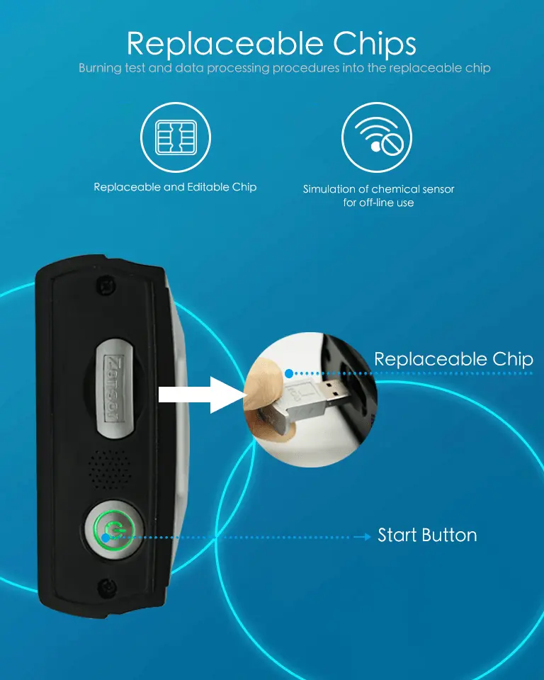 無論您是在開發產品的原型機,還是要建立標準測試方法,都可以使用我們的模擬器功能。您可將電化學掃描方法,檢測持續時間,富集時間,矯正曲線等自由搭配後燒錄到晶片中,即可在無電腦的狀況下,一鍵完成測試,並在螢幕上直接讀取結果。